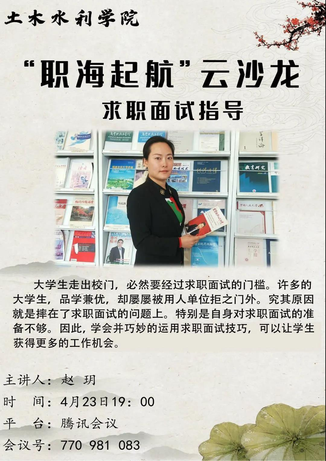 为了进一步加强就业指导,4月23日,公司举行了“职海起航云沙龙”第5期“求职面试指导”。主讲人党总支副书记赵玥,辅导员王国庆与48名员工共享了一小时云沙龙时间。