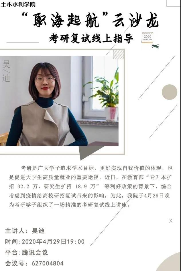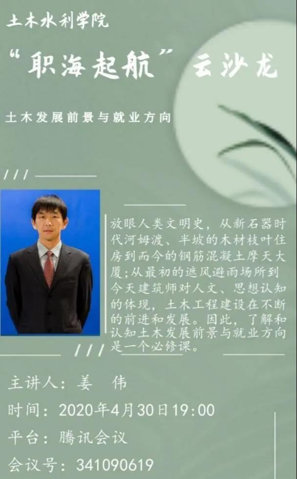 为助力公司学子合理规划学业、完成学业目标,更好地走向未来,4月29日、4月30日,公司举行“职海起航云沙龙”第6期与第7期活动,吴迪老师和姜伟老师分别以“考研复试线上面试指导”和“土木发展前景与就业方向”为题进行讲解,活动共计150名同学参加。