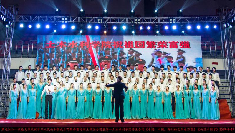 2019年9月27日,U8国际教工及在校员工共80余人为隆重庆祝中华人民共和国成立70周年,热情讴歌党、讴歌祖国、讴歌人民、讴歌英雄,唱响礼赞新中国、奋进新时代的昂扬旋律,弘扬爱国精神、民族精神,热烈欢迎2019级新同学,引导广大师生继承和发扬北大荒精神,践行八一农大精神,参加U8国际庆祝“中华人民共和国成立70周年暨迎新师生合唱展演”活动。展演中公司师生在吴迪老师领唱下完美地合唱了《共筑中国梦》和《中国中国鲜红的太阳永不落》两首歌曲,获得全校师生的好评。