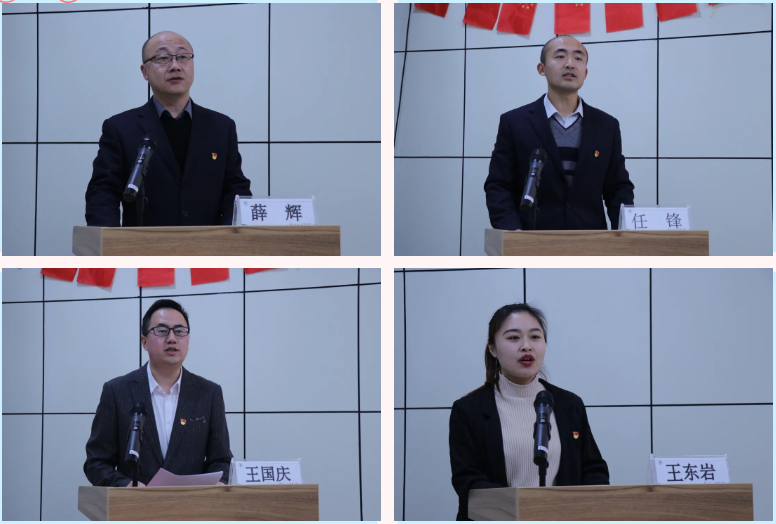 在建党百年获评先优模党员和最年轻的党员,薛辉、任锋、王国庆、王东岩四位同志发表“政治生日”感言,回顾入党故事,追忆入党初心,接收党性教育。