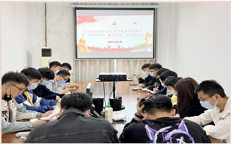 座谈会上,首先三位支部委员领学习习近平总书记五四前夕在中国人民大学考察、建团百年庆祝大会上的重要讲话精神,以及省委书记许勤在省十三次党代会的讲话精神,进一步加强党员的教育管理,确保学习不松懈;其次,毕业生党员代表重温志愿初心、重温入党志愿,讲述自己从对党逐步的了解到成为一名党员的坚定信心,重温自己加入党组织的激动时刻;最后,进行座谈交流,毕业生党员对第二课堂活动开展情况,公司学风寝风建设情况、公司科创情况提出自己思考和建议。