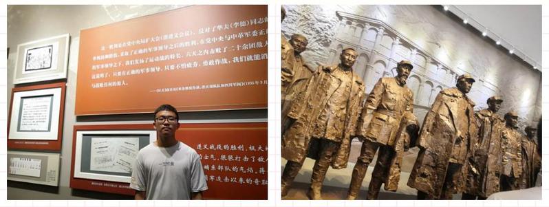 7月6日,实践团队参观了党和红军历史上有着生死攸关转折点的会议召开的遵义会址。进入遵义会址,以毛泽东主席为首的开国元勋铜像、召开遵义会议的会议室、军委总司令办公室以及各式各样的红色文物缓缓从时间深处走来,诉说着那段红色的峥嵘岁月,让队员们深刻地感受到了革命先烈的一腔爱国热血,以及不畏艰险、坚忍不拔、顽强拼搏、攻坚克难的革命精神。