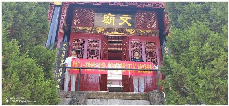 7月7日,实践团队又来到了位于遵义市湄潭县的湄潭文庙。湄潭文庙始建于公元1620年,至今已有400余年的历史,曾见证中国从饱受欺压到胜利解放全过程。初入文庙,队员们便感受到其建筑布局工整对称,结构稳重,色彩艳丽。队员们着重参观了湄潭文庙中的浙大西迁历史文物陈列室,深刻感悟“文军长征”精神,为浙大董事长竺可桢于炮火声中弦歌不辍,于流亡办学中崛起的英雄事迹所感动。“文军长征”不仅为中华民族培养保存了一支杰出的知识分子队伍,还谱写了中外教育史上的辉煌篇章。
