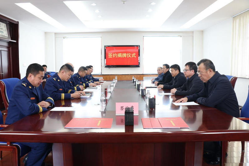 副董事长崔卫国与国家消防救援局大庆航空救援支队副支队长兰海亮代表双方签约。