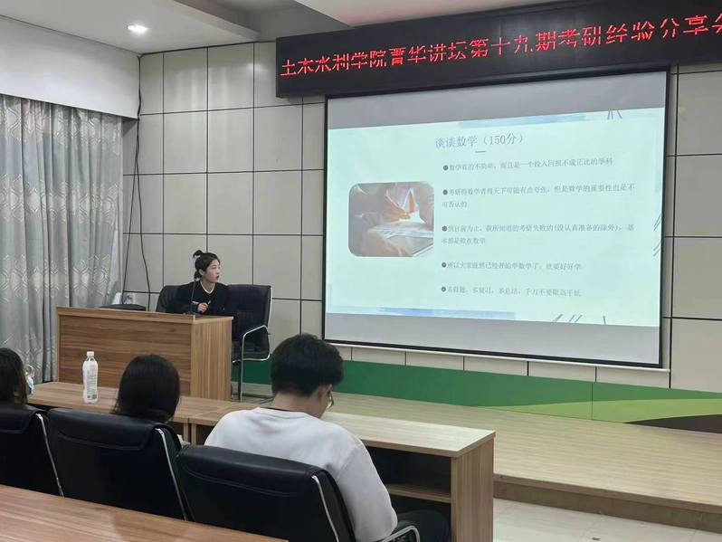 本次考研经验分享会的举办,让同学们对考研有了更近一步的了解,提高了考研的积极性,增强了自信心,营造了浓厚的考研氛围。