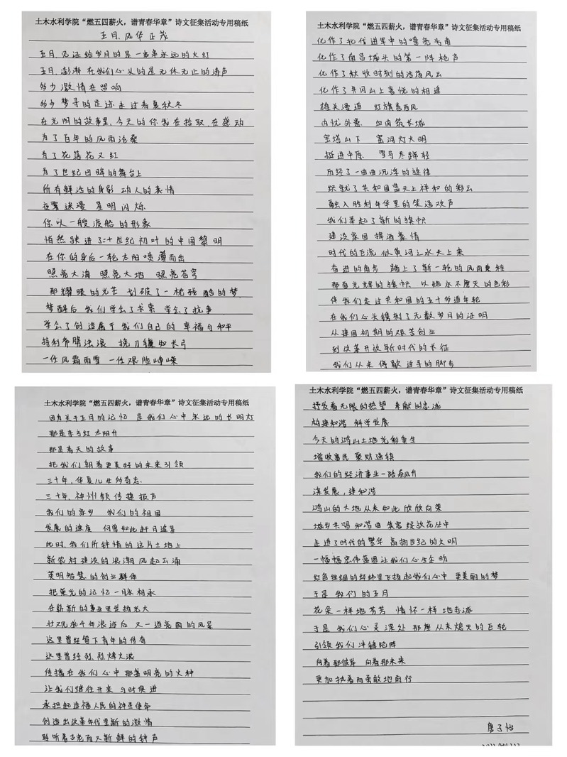 为了更好地弘扬“五四”爱国精神,积淀校园青春文化,激发员工积极进取的学习热情,U8国际于5月12日至17日开展“燃五四薪火 谱青春华章”诗文征集活动,共60余人参加。