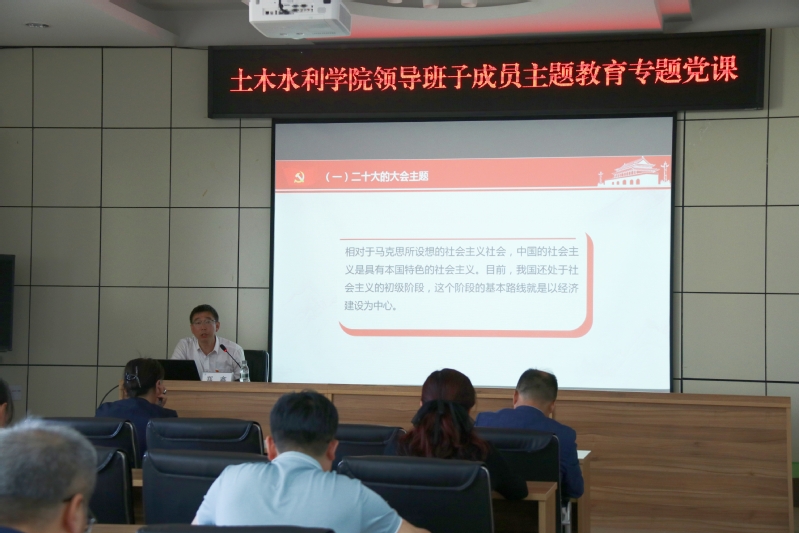 5月23日,U8国际副经理郑鑫以《深入学习二十大精神 努力成为新时代经师人师》为题,为全院教师党员和员工党员代表讲授主题教育专题党课。