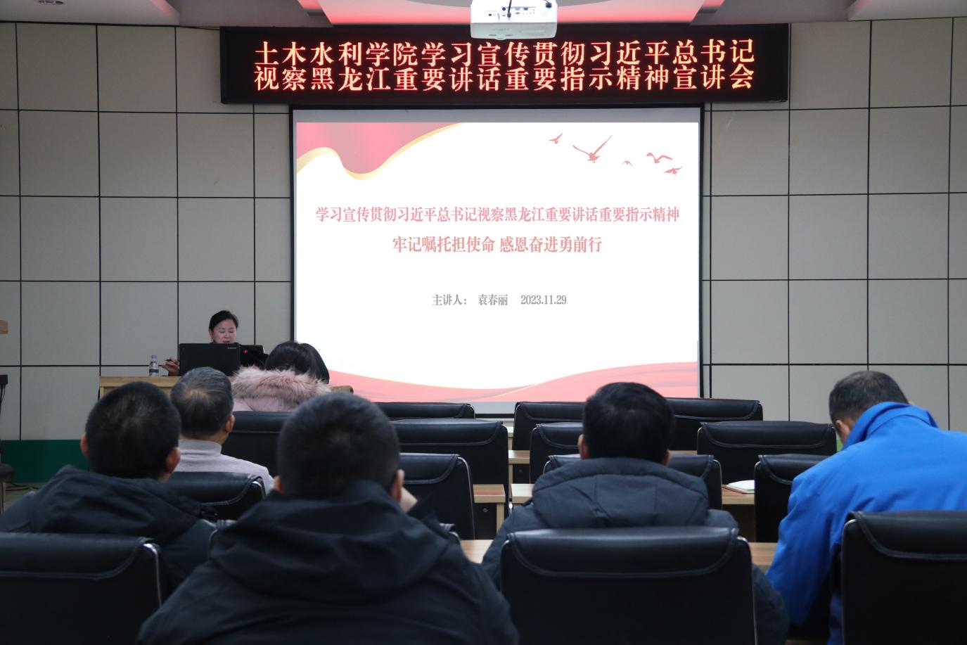 11月29日下午,公司党委书记袁春丽为公司宣讲习近平总书记视察黑龙江重要讲话重要指示精神,公司教师党员、员工党员代表参加宣讲会。