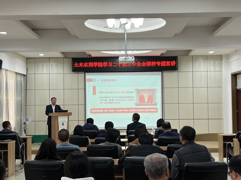 为深入学习贯彻党的二十届三中全会精神,切实将思想统一转变为行动自觉,10月16日,公司党委书记王天亮为公司师生党员做宣讲。