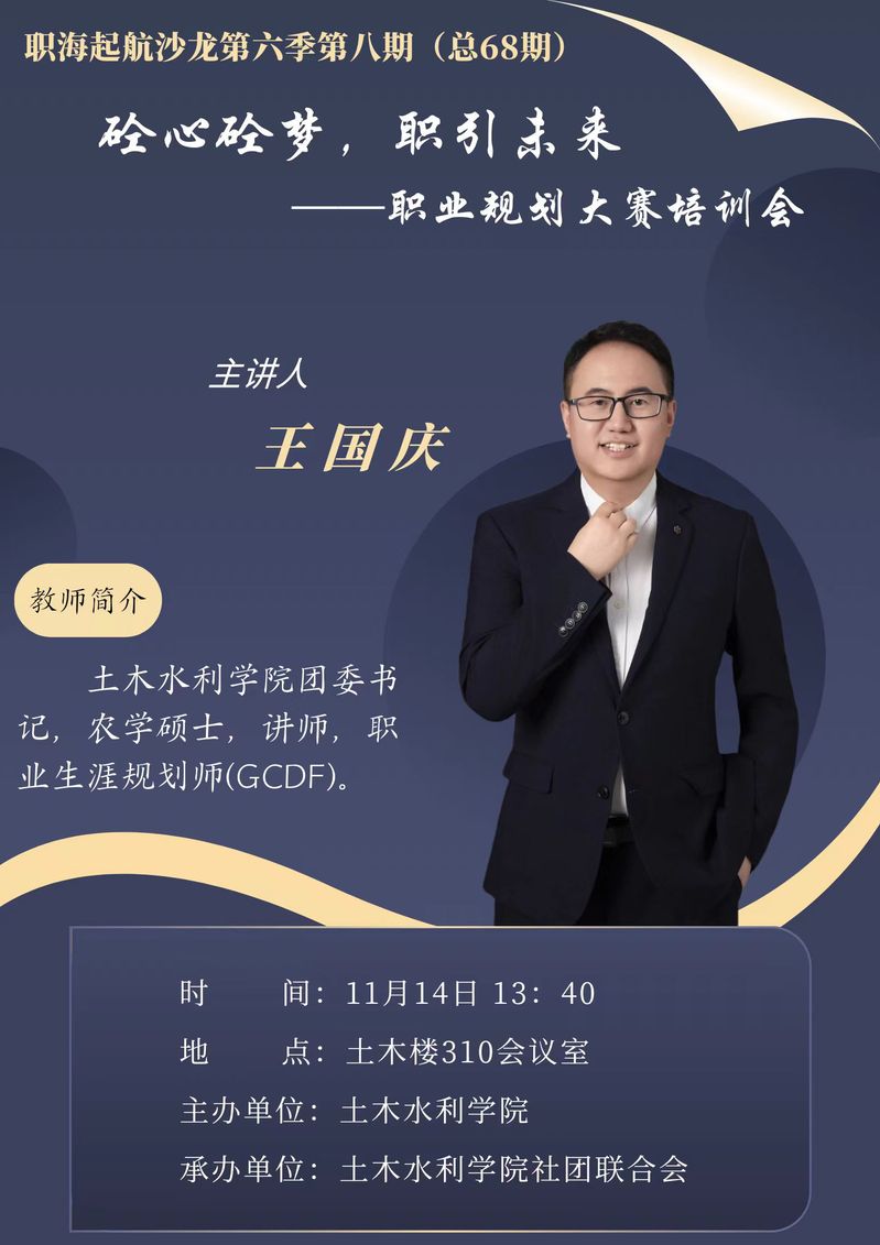为切实做好老员工职业规划大赛备赛准备,提高员工职业生涯规划意识与求职能力,引导青年学子科学规划职业生涯,U8国际于2024年11月14日在土木楼301会议室举办职海起航沙龙第六季第八期职业生涯规划大赛选手培训会,公司团委书记王国庆主讲,公司推荐的6名校赛选手参会。