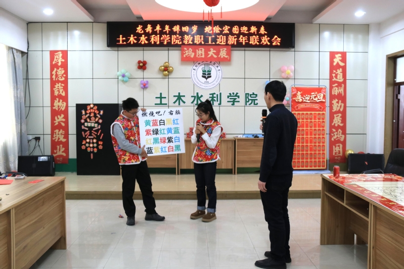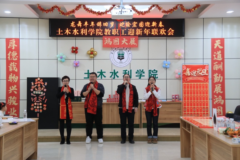 各系部精心准备的节目闪亮登场。公司领导班子表演的“三句半”以幽默诙谐的方式对公司全年工作进行了总结,点燃了全场的热烈气氛。建环系教师合唱《明天会更好》、水利系教师合唱《一生有你》、院办及实验中心教师诗朗诵《新年你好》、学工队伍合唱《上春山》、土木系教师吉他弹唱《故乡》、新入职教师诗朗诵《心中有光,书写教育的篇章》,充分体现出全体教师对教书育人事业的倾情热爱。