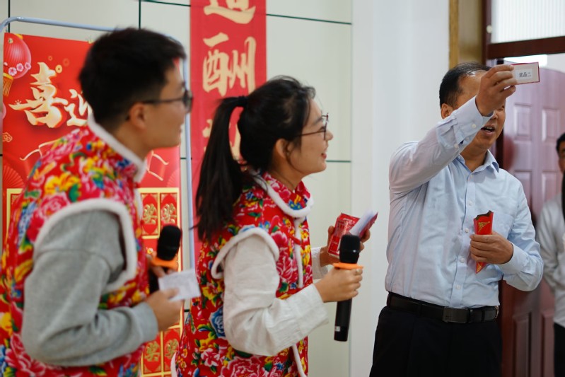 在节目环节之中还穿插了丰富多彩的游戏环节,“好运滚滚来”“红包来啦”“心有灵犀”“燃烧吧右脑”“妙笔生花”,让大家在轻松愉悦的氛围中增进同事情谊,以饱满的热情迎接新的一年。