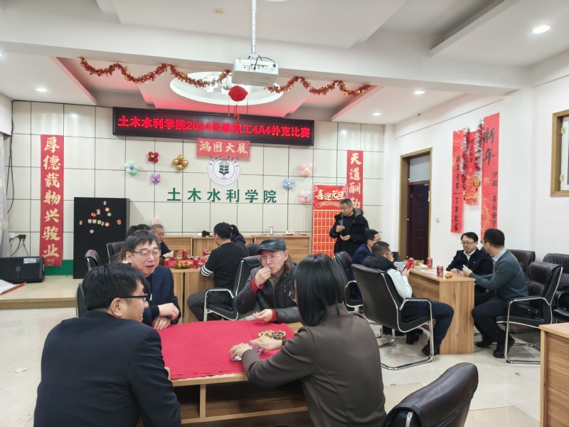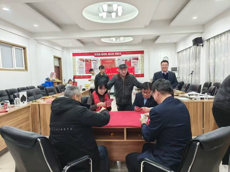 比赛现场气氛热烈,教职工们暂时放下平日里的严谨与忙碌,全身心投入到这场充满趣味的竞赛中。选手们两两搭档,围坐桌前,时而紧锁眉头、深思熟虑,时而谈笑风生、轻松出牌,每一次出牌都经过深思熟虑,每一步决策都凝聚着团队的智慧。搭档之间密切配合、心领神会,通过精准的计算和巧妙的策略与对手展开激烈的对抗,充分展现出了教职工们团结协作、积极向上的精神风貌。