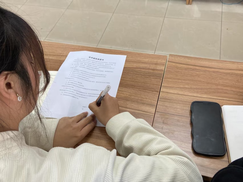 会议最后,全体研究生现场签署了《学术诚信承诺书》,承诺:在未来的科研工作中,将始终坚持学术诚信,恪守学术道德,杜绝任何形式的学术不端行为。