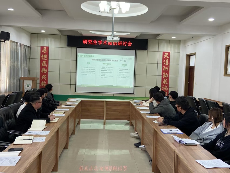 会上,王国庆以“学术诚信是科研工作的生命线”为主题,系统阐述了学术诚信的重要性。他指出学术不端行为不仅损害个人声誉,更会影响团队乃至公司的学术公信力。并通过相关学科案例和国内外案例作以警示教育,同学们围绕土木水利专业多个具有警示意义的学术不端案例进行深入思考和讨论。同学们表示,这些案例让自己更加清楚地认识到学术不端的严重后果,也进一步明确了科研工作中必须遵守的伦理规范。