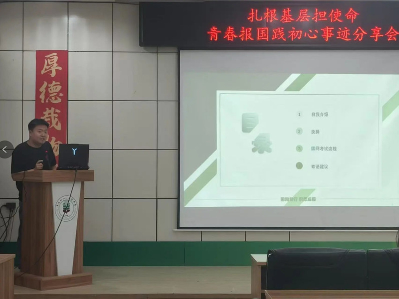 分享会现场气氛热烈,掌声此起彼伏。张智博成功考入国家电网,深入浅出地介绍了备考国家电网所需专业技能;蒲容林成功签约中核二三集团,分享了入职知名企业的心路历程与面试技巧;王焱鑫选择留庆就业,详细介绍了留庆政策等;张正选择基层就业,深度剖析了基层就业岗位的含义与范畴,阐释了基层就业的工作内容。四位毕业生党员为同学们展现了不同的就业途径,并积极号召同学们投身基层、扎根基层、奉献基层,实现个人理想和中国式现代化的“双向奔赴”。