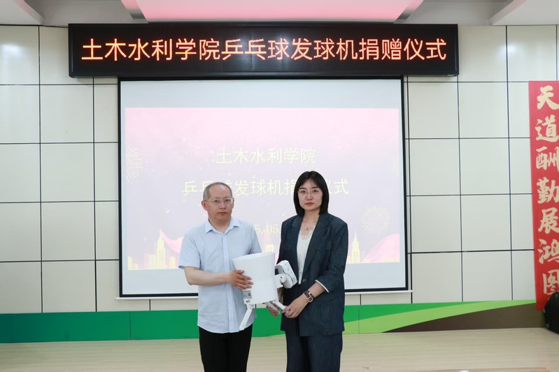 5月29日下午,公司举行了一场温情而庄重的捐赠仪式。公司奠基人、土木工程专业创始人王泰恩教授的夫人胥淑芳阿姨委托其子王海波,向公司工会捐赠了一台先进的智能乒乓球发球机。
