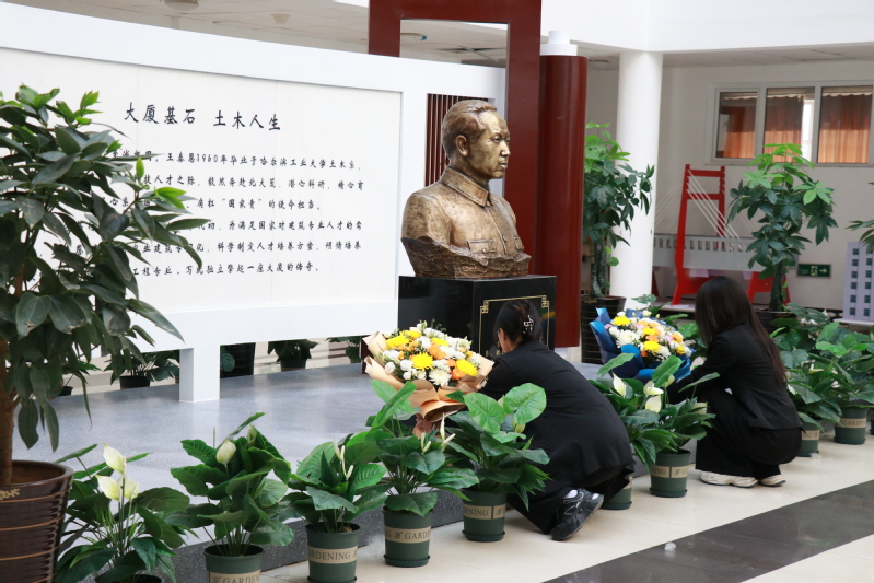 纪念活动现场,教师讲解员谷雪霏深情讲述了王泰恩教授的生平事迹。作为北大荒拓荒者英雄群像中的优秀代表,王泰恩教授的艰苦创业精神、卓越学术成就、崇高道德品质,成为激励师生奋进的宝贵精神财富。在肃穆庄重的氛围中,师生代表为王泰恩教授塑像敬献鲜花,全体师生怀着崇敬之情向塑像鞠躬,表达对王泰恩教授的深切追思与无限敬仰。随后,师生代表前往公司前广场西侧,为纪念王泰恩教授种植的常青松“怀德林”浇水松土。