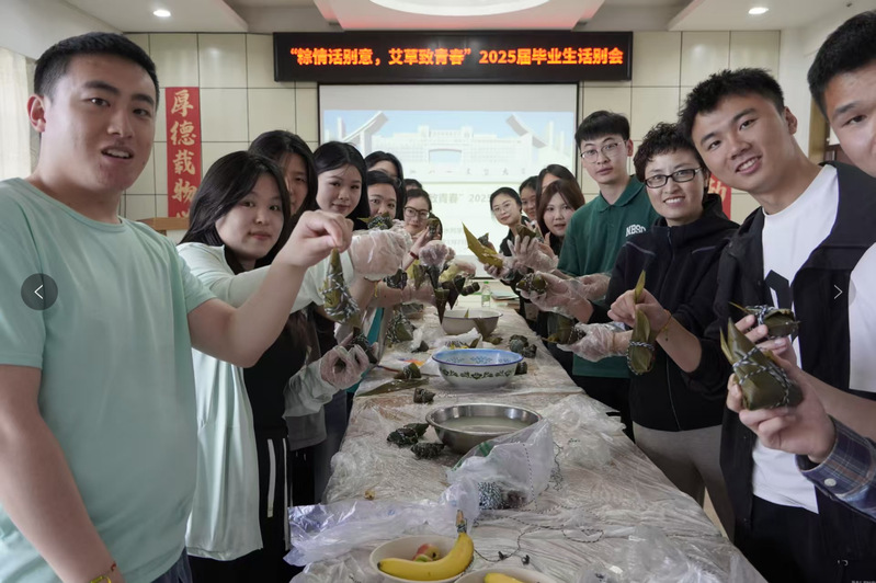 座谈结束后,老师亲手为毕业生佩戴象征丝丝牵挂的五彩绳,将美好的祝愿融入五彩丝线。老师们亲切的叮咛、温情的祝福伴随即将远行的学子一路成长,随后师生欢聚一堂共同包粽子,沉浸式体验端午文化。