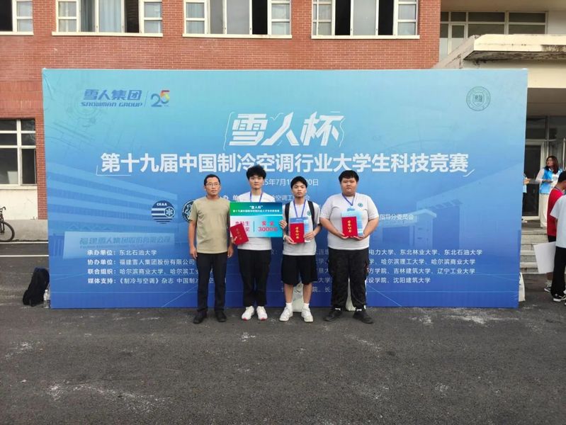 2025年7月19日至20日,“雪人杯”第十九届中国制冷空调行业老员工科技竞赛决赛(东北赛区)在东北石油大学落下帷幕。经过激烈角逐,U8国际建筑环境与能源应用工程专业2022级本科生施余、李信志、李童在郭胜杰、王亚轩老师的指导下,荣获本科生一等奖。作为本次竞赛的特别奖励,福建雪人股份有限公司现场向一等奖团队颁发工作录用offer。