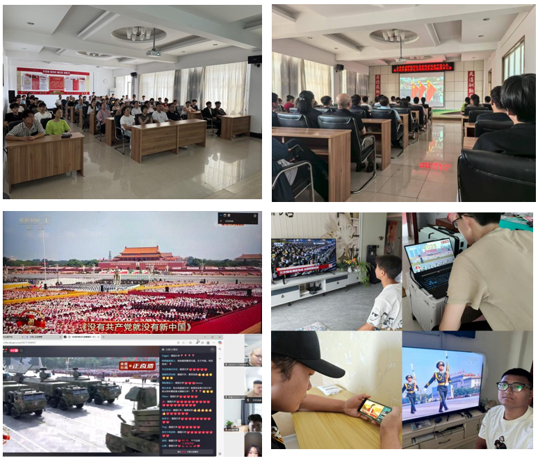 公司将310会议室设为集中观看区域,师生们提前抵达现场,静静等候直播开启。直播期间,大家目光始终聚焦屏幕,认真聆听总书记的每字每句。当受阅队伍迈着稳健步伐走过广场时,现场不时响起热烈掌声。此外,公司还通过班级群、党支部群等渠道,提醒未能到场的师生通过手机客户端、网络平台等方式自主收看。